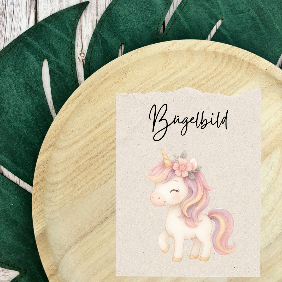 Bügelbild Einhorn Blümchen