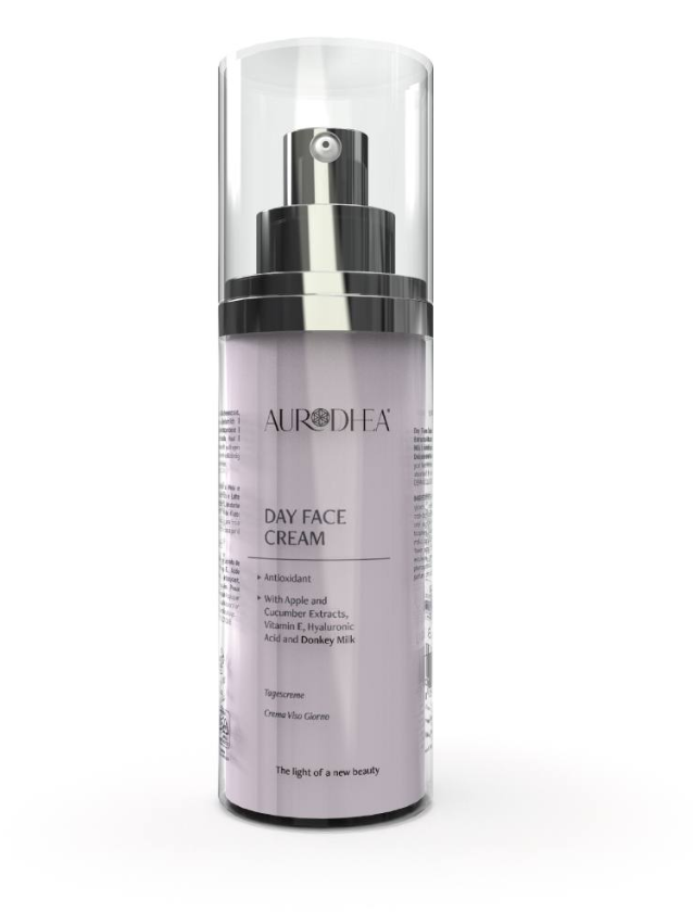 Die Aurodhea Tagescreme mit Eselsmilch ist ein Schönheitselixier, das die Haut schon nach wenigen Anwendungen geschmeidig und strahlend macht. Die Creme stellt das Gleichgewicht des Hydrolipidmantels wieder her und bekämpft dank der antioxidativen Eigenschaften der Eselsmilch freie Radikale. Eselmilch fördert zudem die Geweberegeneration. Bei täglicher Anwendung hilft die Creme dank der enthaltenen Hyaluronsäure, die Gesichtshaut aufzupolstern, zu regenerieren und mit Feuchtigkeit zu versorgen. Die Formel enthält folgende Extrakte: Apfelextrakt, der die Haut aufhellt; Wassermelonen- und Gurkenextrakt, die die Elastizität der Haut erhöhen; Linsenextrakt, der das starke Antioxidans Vitamin C enthält und die Kollagenproduktion anregt; Passionsblumenextrakt, der beruhigend wirkt, Rötungen mildert und die Unannehmlichkeiten trockener, von Couperose betroffener Haut lindert.