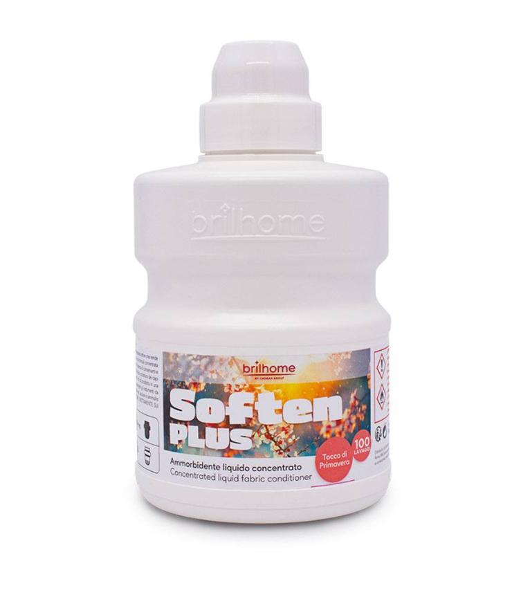 Soften Plus „Hauch des Frühlings“ ist ein flüssiger Weichspüler mit hohem Gehalt an aktiven Wirkstoffen, der Kleidungsstücke, Bettwäsche und Heimtextilien weich und angenehm duftend hinterlässt. Die konzentrierte Formulierung zeichnet sich durch eine sehr geringe Dosierung, die für platzsparende Verpackung sorgt, sowie durch den Verzicht auf Konservierungs- und Farbstoffe aus. Der Duft hält sehr lange auf Textilfasern an. Seine Verwendung erleichtert das Bügeln von Kleidungsstücken, indem es die Reibung zwischen den Fasern reduziert.